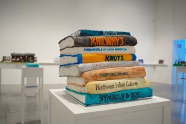 One of the twelve collaborators was an expert cake maker - Karen Wielonda of Frostitution - who inspired us to make sculptural cakes of our experiences for the exhibition, so it became a show of cakes.