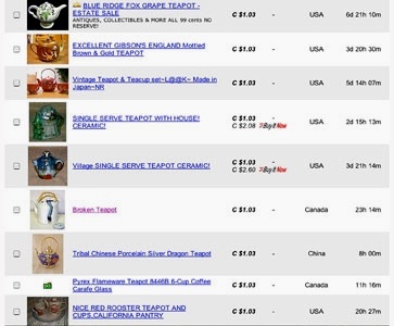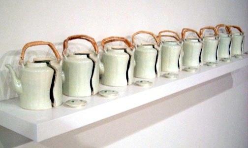 I found this broken teapot in Toronto, and made nine slip-cast ceramic copies of it in its broken state, with woven reed handles. I tried to sell one of my broken copies on eBay, and someone “watched” it, but no one bid on it.