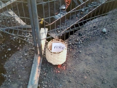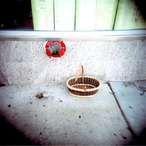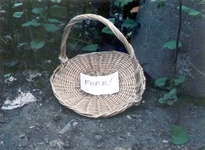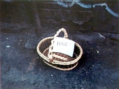 I found these broken baskets in Toronto, repaired them, and left them out for free in downtown Montreal to coincide with Material Concerns at the Centres des arts actuels Skol. More info here.
