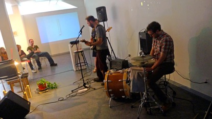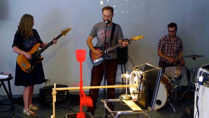 Bottom Images: Tyler and I put on a free concert in the gallery as The Department, and we were accompanied on drums by the terrific Matthew Sarty. In these images you can see a bit of one element of Tyler’s installation ‘Watering Wheeler’, which was a kinetic sculpture he made using a turntable and various other objects he scavenged in Dawson City - the sculpture also ended up watering the gallery plants for the duration of our exhibition.