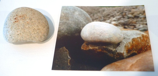 As part of a two-person exhibition I had at the ODD Gallery with Tyler Brett in 2013, I made clay copies of six rocks I found in Dawson City in 2010. This image shows one of the copies, shown alongside a photo I took of the original rock as I returned it to the landscape near Dawson City.