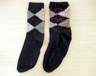 I found an argyle sock on a sidewalk in Guelph, so I took it home and washed it, knit a wool-blend argyle sock to match it, and then left the completed pair in a thrift store in Lethbridge, Alberta. Documentation of this was shown in Small Things Forgotten, a project for the Southern Alberta Art Gallery’s “Into the Streets: Avenues for Art” 2009 exhibition series.