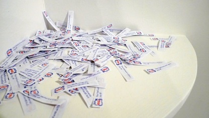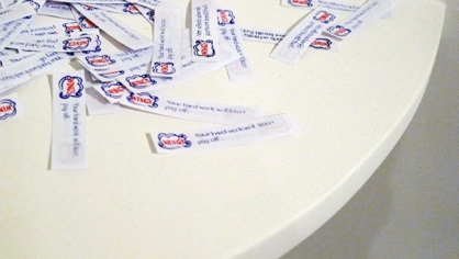 So I drew 300 pen on paper copies of the fortune, front and back - the back had the French translation - and displayed them in the group exhibition Nothing to Declare at the Power Plant Contemporary Art Gallery. Curated by Helena Reckitt.